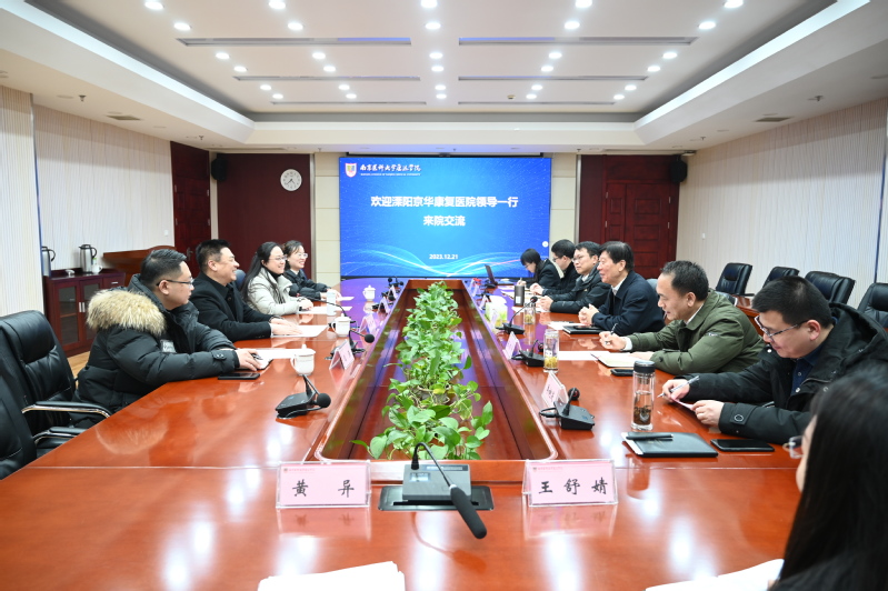 院长张前德代表学院向溧阳京华康复医院一行来访表示欢迎。副院长张怀平介绍了学院迁址连云港办学10周年发展历程,溧阳京华康复医院陈颖院长介绍了医院概况和发展历程。随后双方围绕教学基地建设、师资队伍建设、人才培养、实习就业等内容展开交流。张前德院长表示,双方可以进一步深入交流,在师资队伍建设、医疗资源建设及联合人才培养等方向进行探索。