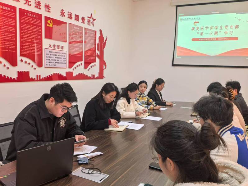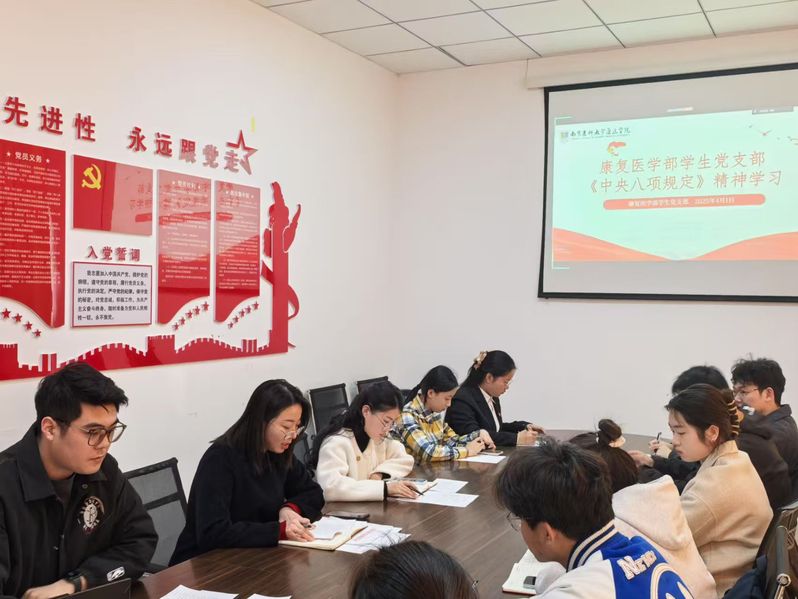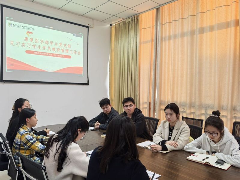 为贯彻落实中央八项规定精神学习教育的要求,强化大学生党员的教育培养,推动校内校外学生党员教育管理工作走深走实,4月1日下午,康复医学部学生党支部组织召开深入贯彻中央八项规定精神学习教育工作会暨实习学生党员教育管理座谈会。支部毕业生党员线上参会,校内即将进入临床实习的22级学生党员及支部教师党员于C404学部会议室线下参会。会议由支委王烁老师主持。