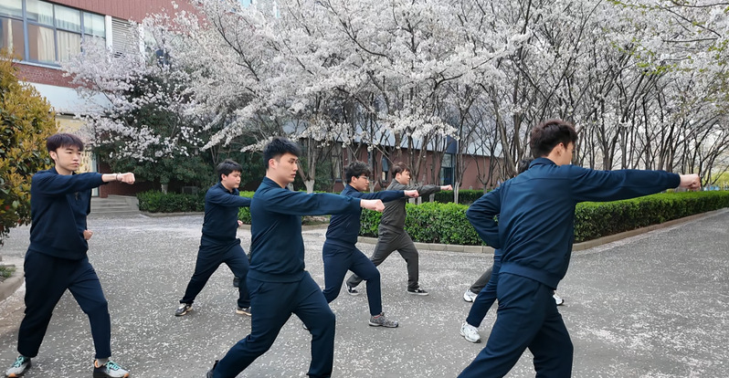 活动以“以体强心,以美润心”为双翼,融合多元形式。樱林之下,军体拳的飒爽英姿与易筋经的柔韧舒展交相辉映,学子们于落英缤纷中挥洒青春朝气,将传统武术的刚柔并济化为心灵的坚韧力量。活动更与“礼敬中华优秀传统文化”项目深度联动,通过养生茶饮、诗词吟诵等环节,让传统文化在樱雨纷飞中焕发新生,赋予心理健康教育深厚的文化底蕴。