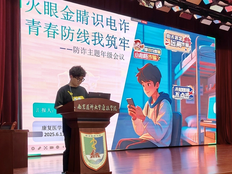 6月11日晚,康复医学部在医政楼报告厅开展了一场以“火眼金睛识电诈,青春防线我筑牢”为主题的反诈知识宣传年级会议,康复治疗学专业2023级、2024级全体学生参会。