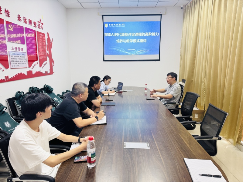 9月8日上午,康复基础教研室在2-C404会议室展开主题为“探索人工智能时代康复评定课程的高阶能力培养与教学模式重构”的集体备课活动。此次活动邀请江苏省人民医院康复医学中心孟殿怀主任莅临指导,活动由学部副主任单树芝主持,学部教师参加,共同就康复评定课程的教学内容、能力培养及人工智能融合路径进行了深入的探讨与交流。