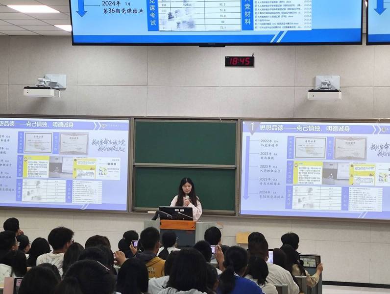 讲座于18:20准时开始。钱雅洁同学结合自身学习实践经历,围绕学习方法、时间规划、竞赛参与与综合素质提升等维度,系统分享了宝贵经验与实践技巧。现场气氛热烈,听众专注,同学们纷纷表示收获颇丰。她的分享既有高屋建瓴的视野格局,又包含细致入微的方法指导,为在座同学清晰地勾勒出一条成长发展的实践路径。