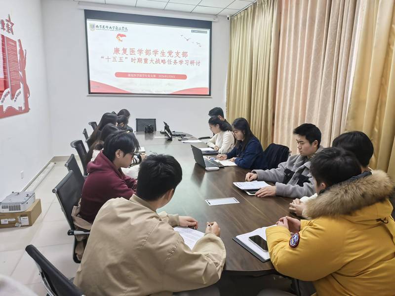 1月8日下午,康复医学部学生党支部在学部C404会议室举行专题学习研讨会,围绕“十五五”时期经济社会发展的指导思想、重大原则、根本保证及重大战略任务开展深入学习与交流。本次活动由党支部书记管琪琪主持,支部全体党员参加。