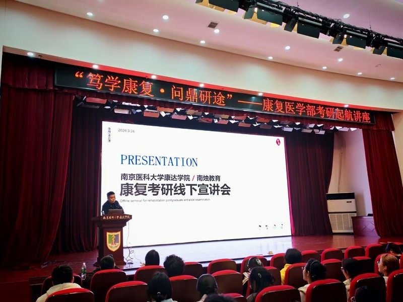 3月26日晚,康复医学部在医政楼报告厅举办了“笃学康复·问鼎研途”考研启航讲座。本次活动特邀南烛康复考研资深规划师维尼老师担任主讲,康复学工办主任管琪琪老师出席活动,学工办柳老师主持,康复医学部23、24、25级百余名同学到场聆听。